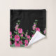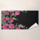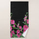 Pink Hollyhocks on Black Bath Towel Set