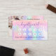 A trendy holographic background with unicorn colours and rainbow colours in pink, purple, mint green.