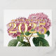 Pink Hydrangea Flower Happy New Year 2025 Gold Foil Holiday Postcard