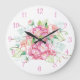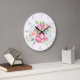 Accent your walls with floral clocks. This round wall clock features a pretty pink hydrangea watercolor illustration with soft green leaves in the background. Buy this pretty floral clock for yourself or buy it as a gift for that special someone.