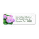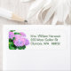 A pink and purple hydrangea flower return address label.