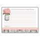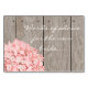 Pretty pink hydrangea mason jar bridal shower words of advice cards with a wooden fence, antique damask pattern lace background and stitched pink ribbon look design. This words of wisdom for a happy marriage card is perfect for a rustic chic, country, farmhouse, garden party or barnyard style bridal shower party. The mason jar can be personalized with the initials of the bride and groom. Designed by Chrissy H. Studios, LLC. All rights reserved.
