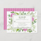 This charming and elegant RSVP card with beautiful, wispy, multi-hued pink hydrangeas and stunning green foliage and coordinating pink striped back is perfect for enclosing with your invitations. Your guests will find it easy to respond to your wedding. It's an excellent choice for any spring or summer bride. You can easily make it your own by selecting Personalize this template and typing in your response deadline. In seconds you will see your unique and stunning RSVP cards! Also, having the entrées selected will help with the catering at your reception.