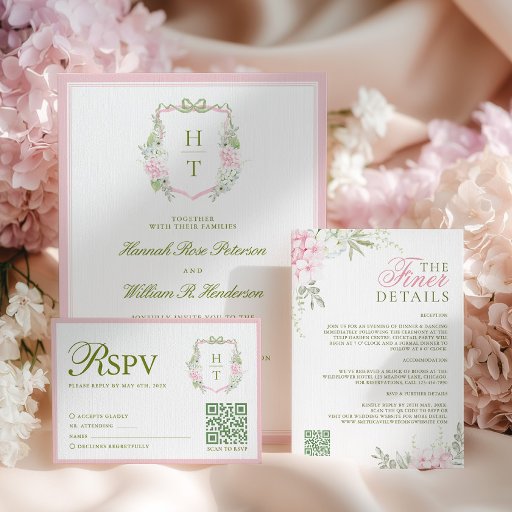 Pink Hydrangea Monogram Crest WeddingConçu par Juno Designs