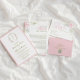Elegant floral Wedding RSVP Card, featuring a pastel pink delicate hydrangea floral arrangement and elegant typography.