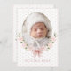 Beautiful pink watercolor hydrangeas with a fancy vintage frame was used to create this lovely announcement. Add your beautiful baby girl photo in the vintage greenery floral frame. Birth stats on the reverse side in a lovely vintage frame done i coordinating pink colors. Perfect for a baby birth girl announcement. Pink polkadot background for a shabby chic look.