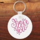 A fancy font pink I love you design. This design looks really effective on these Keychain