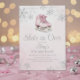 A beautiful ice-skating birthday invitation featuring soft pink tones, elegant silver snowflakes, and watercolor ice skates. Perfect for winter birthdays and girls skating parties.