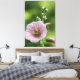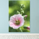 Gorgeous pink hollyhock in full bloom, with a avacoda green mottled background. Large scaled stretched canvas art print.