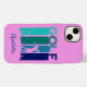 The figure of a woman golfer swinging her club is featured on this cell phone case. Customize the design with your name. The bright pink background colour makes this case a stand out.