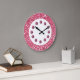 Pretty printed pink gemstone bling wall clock with pink rhinestone jewels and glitter on the clock face in this decorative wall decor design for your kitchen, dining room, dorm room, or any room in your house you want to add some colour and character. Designed for ladies or teenage girls who like to make a splash with their decor.