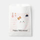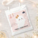 Adorable Halloween favour bag featuring a kawaii-style ghost with rosy cheeks and a bow on a soft pink striped background with hanging stars and spider accents. A sweet, non-scary option for kids’ parties, school events, or pastel-themed Halloween celebrations. Perfect for handing out candy, boo bag treats, or classroom favours with a fun and friendly touch.