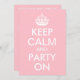 Customizable text areas on a pink and white "Keep Calm and Party On" parody for a birthday party.
