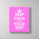 Pink keep calm canvas print | Customizable text. Create your own Keep calm and carry on parody print or poster. Personalize this template with your own funny quote or saying and custom background colour.