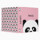 Pink Kids Kawaii Panda Personalized School Binder. Pretty pink background with large kawaii panda face on front. Personalize with name and text on spine. Pattern of panda faces on back. www.SamAnnDesigns.com