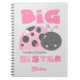 Big sister design with adorable pink ladybug with a cute kawaii face and little heart. Pink Text says BIG SISTER. Matching Little Sister design also available. PinkInkArt original!