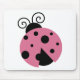 Cute pink ladybug with black spots and curly antennae. Customize by changing background colour.