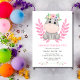 These cute birthday party invitations feature a cute watercolor hippopotamus with flower on head and beautiful pink leaf. Personalize the birthday party invites by adding your child's name, age, and party details.
