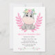 Pink Leaf Cute Hippopotamus Floral 2nd Birthday Invitation