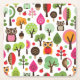 pink leaf tree retro owl pattern square paper coaster