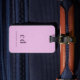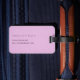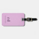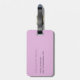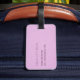 Pink faux leather print as background. Personalize and add your monogram letters and full name on the front. Your contact information on the back. Purple text.