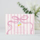 Sweet and stylish wedding thank you card featuring pink hand-drawn stripes, a coquette bow, and watercolor lemons. A lovely way to express gratitude with a Mediterranean-inspired charm.