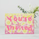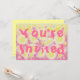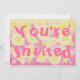 Fruity, fizzy, sweet and sour... slices of lemon, bubbles and stars float in pink lemonade. Party invitation with a pink, yellow, orange and white customizable design for you to personalise with your own text, images and ideas. An original coloured pencil and white ink drawing by Jess Perry.