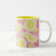 Fruity, fizzy, sweet and sour... slices of lemon, bubbles and stars float in pink lemonade. Mug with a pink, yellow, orange and white customizable design for you to personalise with your own text, images and ideas. An original coloured pencil and white ink drawing by Jess Perry.