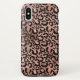 This bold and beautiful animal print design has a pink or rose gold background with black leopard spots. The spots are similar to cheetah or jaguar print.