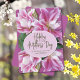 Pretty pink lilies, custom Mother's Day greeting card to order printed or as a download. Beautiful lavender pink, double petal flowers, called roselily, cover the front of flat greetings. A light pink oval in the centre holds the text. "Happy Mother's Day" is in modern handwriting, with shadow text to make it stand out. The signature is printed and all text is dark green. A short message, such as, "to the best mom ever" can be added, or use the lines for names. The printed cards have edge shape options and paper upgrades. This floral design also comes as an instant download.