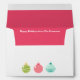 Elevate your holiday correspondence with our Pink-Lined White Envelope featuring festive ornaments. This envelope is lined with vibrant pink and includes a space for a return address on the front, or it can be left blank and paired with a coordinating wrap-around return address label. The front is adorned with a charming ornament design, with a row of ornaments on the back. Inside, add a short personal message to make your holiday greetings extra special.
