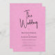 Whimsical minimalistic modern, customizable black script typography, wedding invitation. The light pink printed linen texture background adds a touch of organic feel of classic elegance. Other colours are available.
