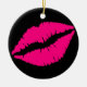 Pink lipstick kiss pop art ceramic ornament