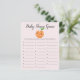 Cute little cutie theme baby shower baby name game card featuring illustrations of an orange with white flower. The texts are editable. Perfect game to play during the shower. It asks guests to write down baby names that starts with each alphabets. Whoever finishes all alphabets first wins!