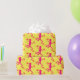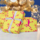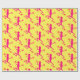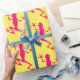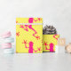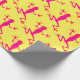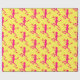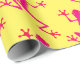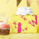 Wrapping paper with image of pink lizards against a yellow background.