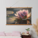 A lovely wood-topped wall tapestry with a closeup photo of a beautiful pink lotus blooming in the morning light.