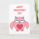 This cute Valentines Day card features a cute cartoon of a pink owl with sleepy eyes, a small beak and cute little feet. The owl has a big red love heart in the middle of its belly and wings wide open ready to give someone a big hug. The inside of the card has customizable text so you can write your own personal message of love.