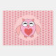 This awesome set of gift wrap features a cute cartoon of a pink owl with sleepy eyes, a small beak and cute little feet. The owl has a big red love heart in the middle of its belly and wings wide open ready to give someone a big hug.