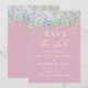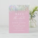 Pink Luxury Glitter Wedding Save The Date Cards features a pink background accented with iridescent glitter and your custom save the date information. Personalize with your text by editing the text in the text boxes provided. Designed for you by ©Evco Studio www.zazzle.com/store/evcostudio