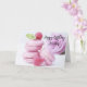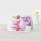 Birthday card with a delicious photograph featuring a tower of pink macarons with raspberries placed around. Delightfully divine.