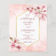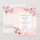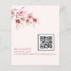 Pink magnolia spring flowers with light watercolor splash geometrical shape budget wedding invitation with QR RSVP code, you have to generate qr code, download image and then replace it on a template.