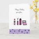 Send this stylish pink makeup design that says 'you so glam' she'll love it! Featuring pink lipstick, mascara and cheek blush.