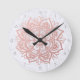 A lovely wall clock featuring a pink mandala flower design on a white marble background. The perfect bedroom decoration for a teen girl's room or dorm.