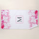 Modern hot pink maple leaf watercolor wash and monogram beach towel. It displays a border of white maple leaves on pink watercolor wash and your monogram in a frame with outline placed in the centre.