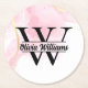 Search Terms: paper coasters, round paper coasters, monogrammed coasters, personalized coasters, coasters, drink coasters, coaster set, pink, gold, glitter, girly, modern, stylish, high-quality.