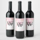 Pink Marble Monogram | Girly Modern Gold Glitter Wine Label