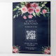 Pink Marsala Floral Ampersand Navy QR Code Wedding Tri-Fold Invitation