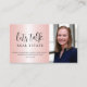 Let's talk real estate! Promote your business with this professional, pink metallic business card. Customize your contact info, photo, and logo.