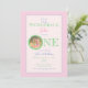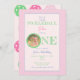 Pink Mint Crawl Walk Pickleball Theme 1st Birthday Invitation