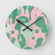 Pink Mint Green Melting Drip Pattern Abstract Round Clock